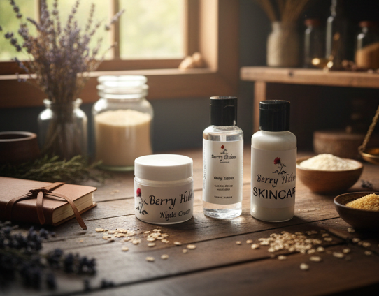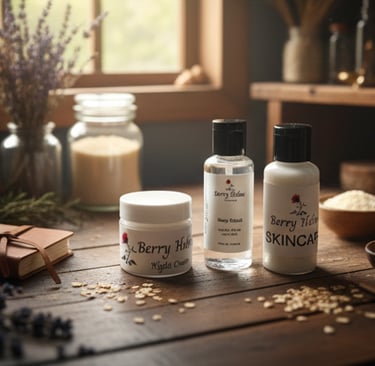 Moments of gentle self-care with berry holms products.